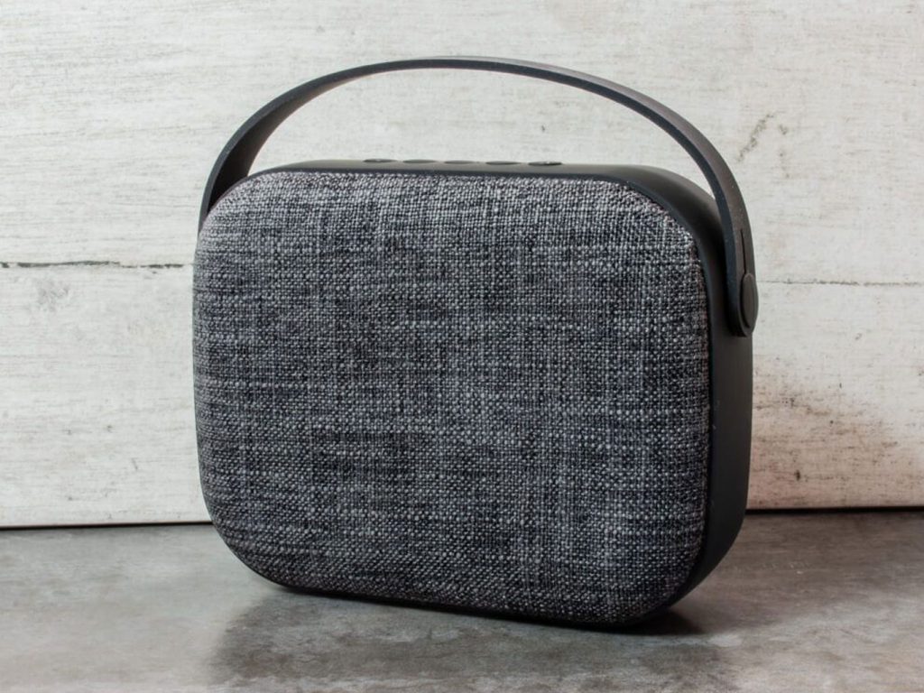 This speaker has output power of 5W, which is plenty to give you an earful of your favourite music. But, this speaker is more than just an earful, it’s an eyeful as well! Covered in soft-but-durable grey cloth, this speaker looks amazing. And adding to the effect is the thick black edge that runs all the way around it, featuring the control buttons on its upper side.