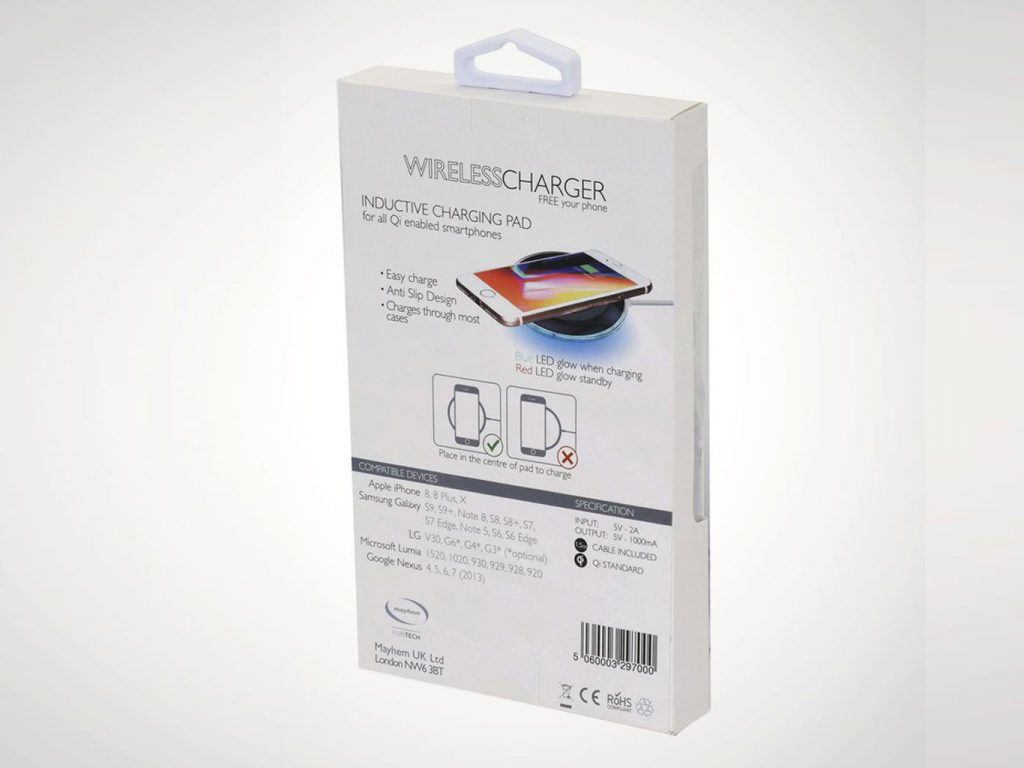 With a 5-watt power output, this charger is strong enough to work through most phone cases, making it even more convenient to use! So, if you’re more than ready to bid your cabled charger farewell, order your Mayhem wireless charger today!