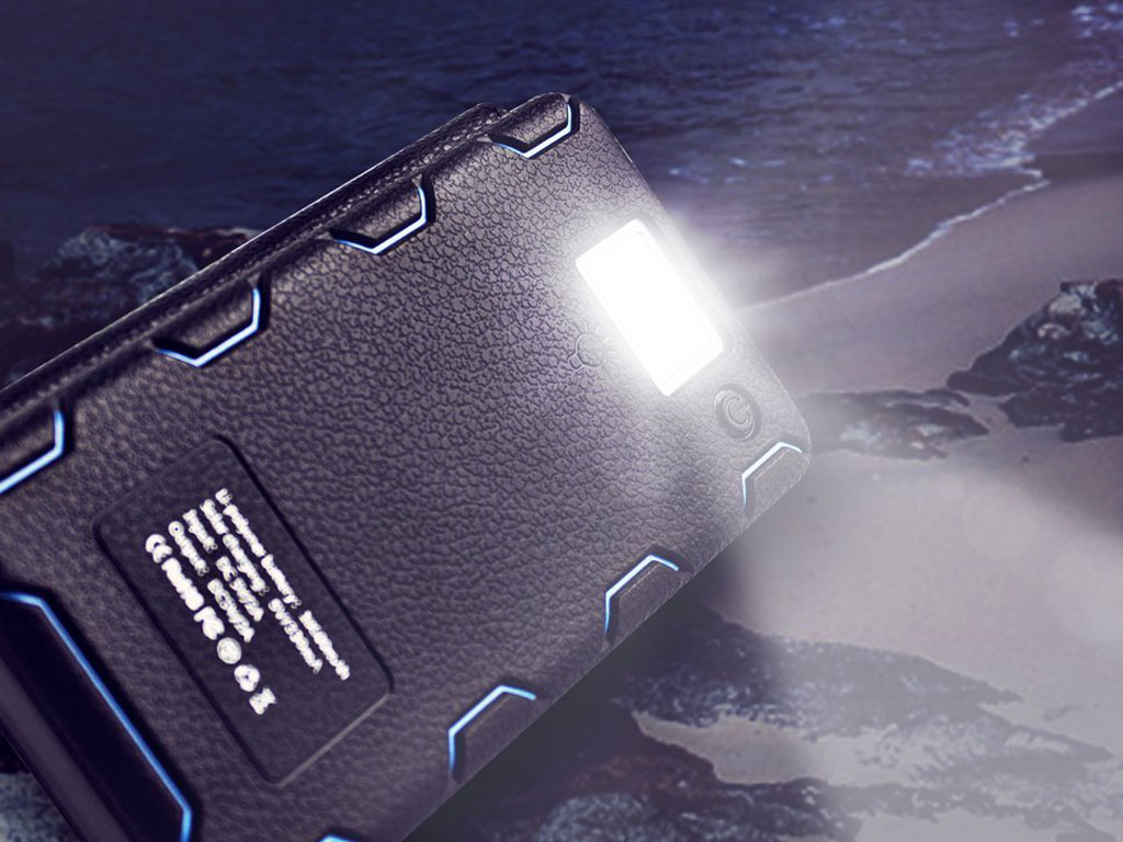 The multi-circuit IC chip makes it great for charging 2 devices at the same time, charging at the correct rate so it doesn’t cause overheating. You can also charge the unit via cable and wall socket. It’s also weather-proof, really portable and features great LED flash light making it a reliable asset for any adventure.